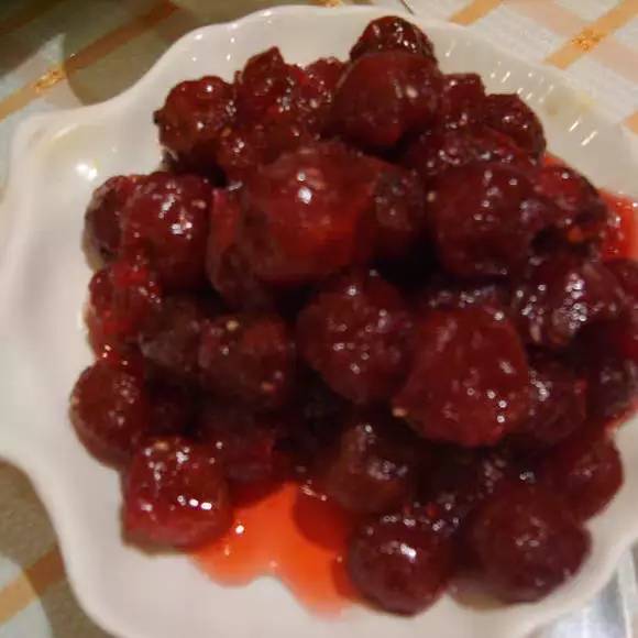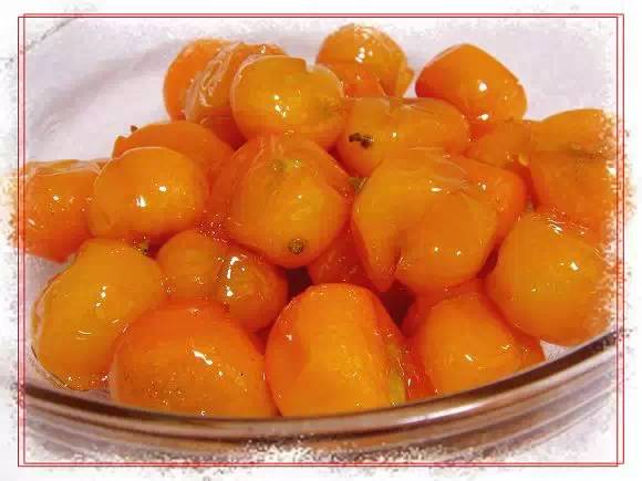 原料:新鲜山楂1斤、冰糖半斤、盐1克做法:1. 山楂洗净,去核去蒂。2. 锅中倒入山楂、冰糖、适量清水(250克)、盐,大火烧开,转小火炖20分钟左右,全程不盖盖子,看到汤汁粘稠,山楂变软关火,晾凉后即可食用。糖渍金橘 【补充维C 预防感冒】